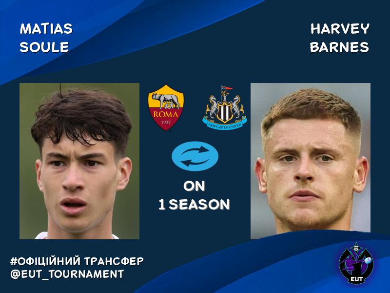 Harvey Barnes (Ньюкасл) AND Matias Soule (Рома)